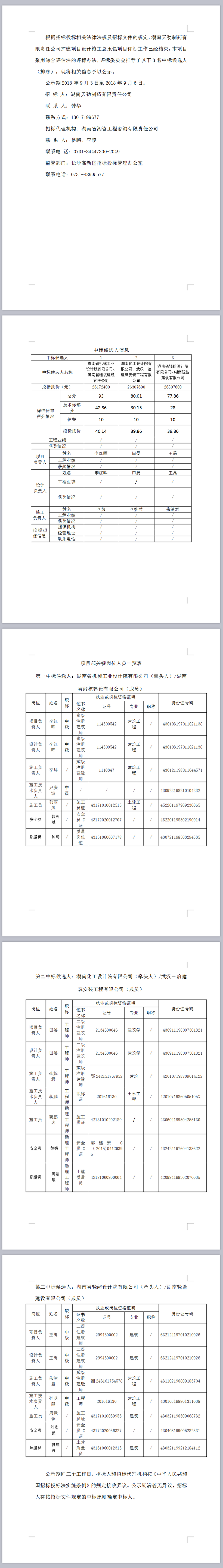 湖南天勁制藥有限責任公司擴建項目設計施工總承包 中標候選人公示
