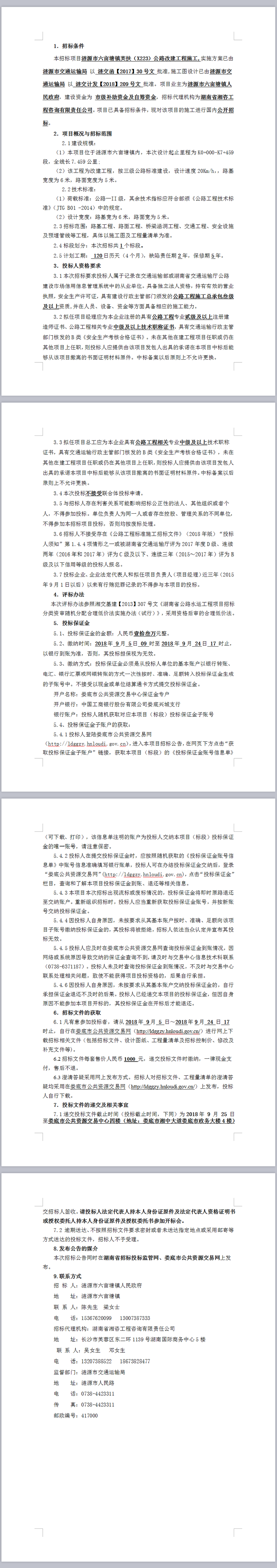 漣源市六畝塘鎮(zhèn)芙扶(X223)公路改建工程施工招標(biāo)公告