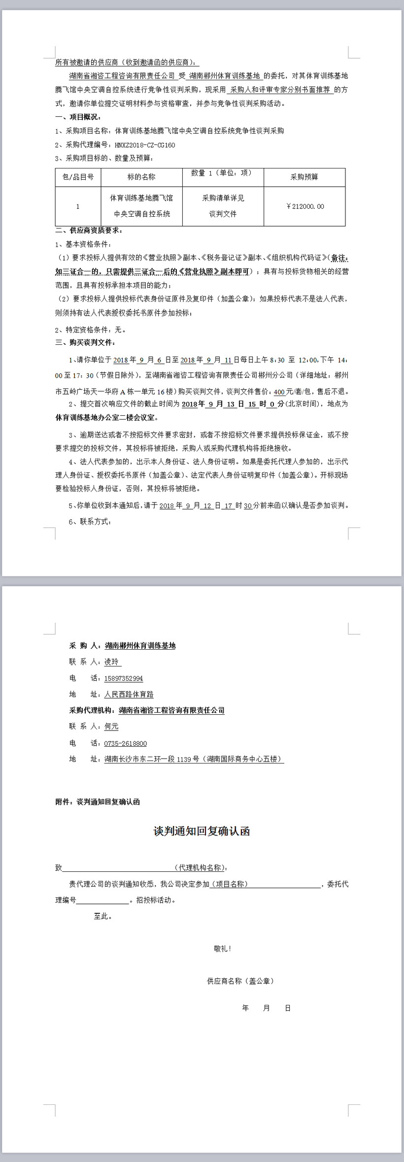 體育訓(xùn)練基地騰飛館中央空調(diào)自控系統(tǒng)競爭性談判采購談判公告