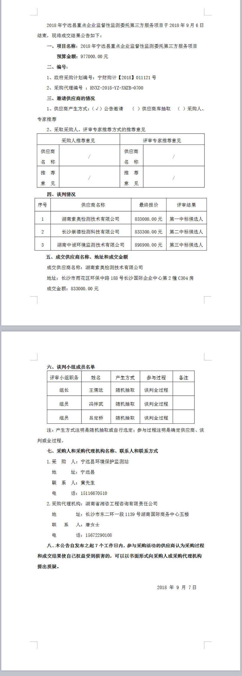 2018年寧遠縣重點企業(yè)監(jiān)督性監(jiān)測委托第三方服務項目競爭性談判成交結(jié)果公告
