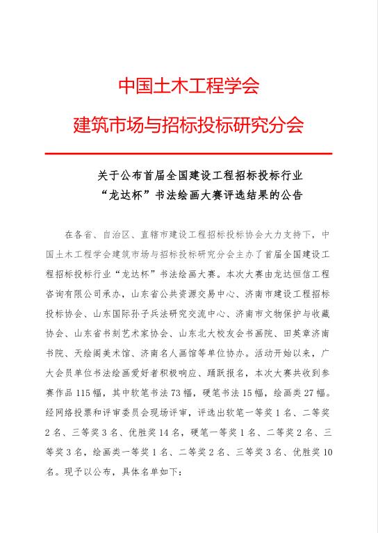 【喜訊】熱烈祝賀我司王佳勇在首屆全國建設(shè)工程招標(biāo)投標(biāo)行業(yè)?“龍達(dá)杯”書法繪畫大賽獲得軟筆類優(yōu)勝獎(jiǎng)
