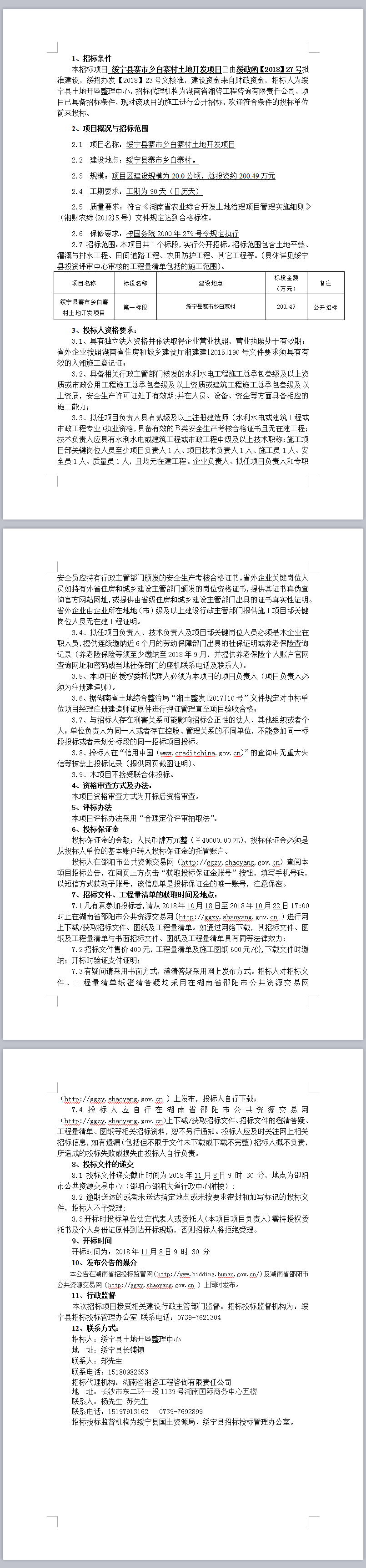 綏寧縣寨市鄉(xiāng)白寨村土地開發(fā)項(xiàng)目公開招標(biāo)公告