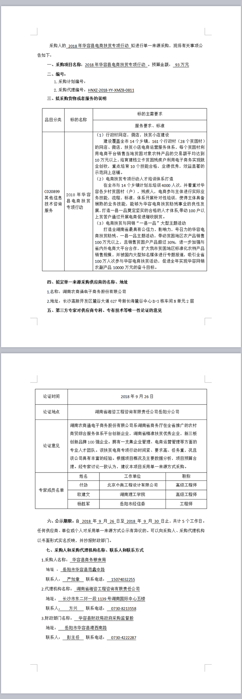 2018年華容縣電商扶貧專項(xiàng)行動(dòng)單一來(lái)源采購(gòu)公示