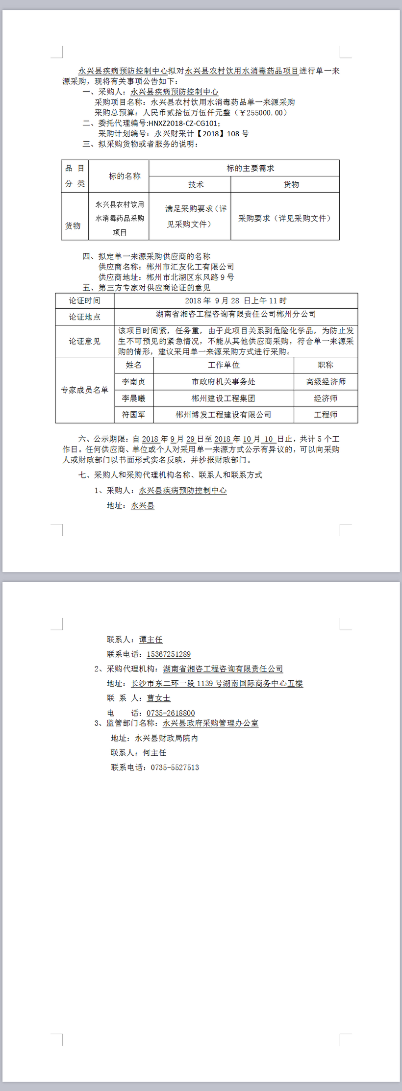 永興縣農(nóng)村飲用水消毒藥品單一來源采購公示