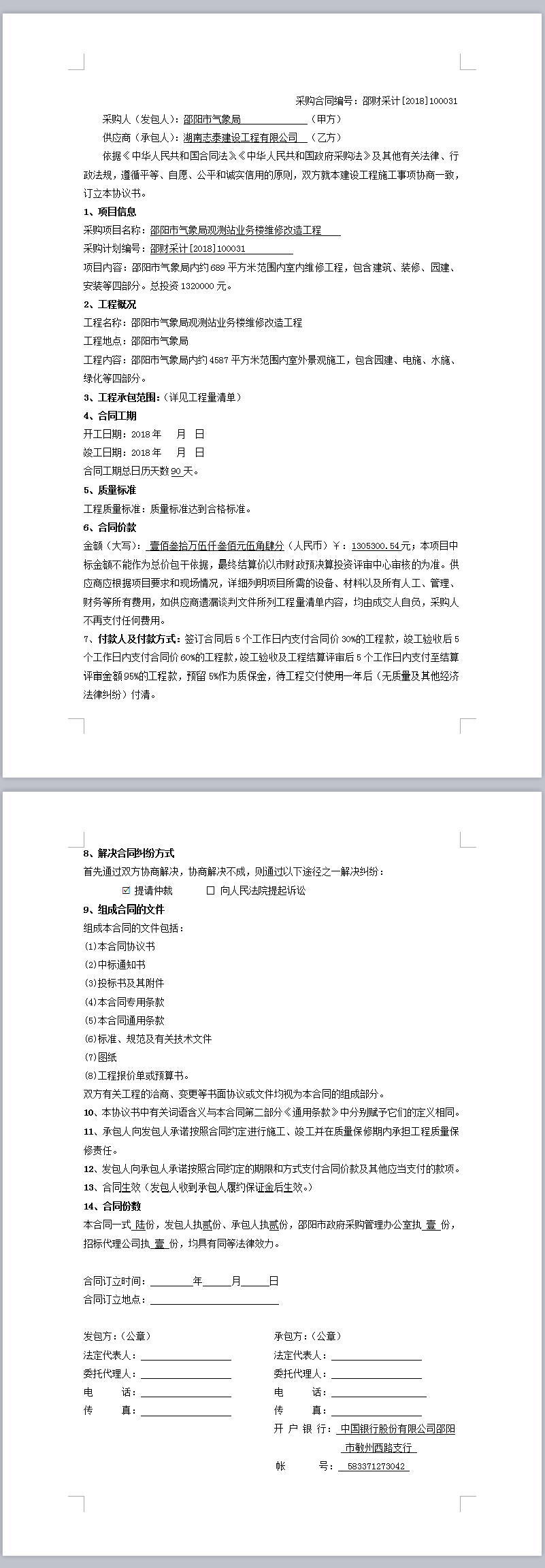 邵陽市氣象局觀測站業(yè)務樓維修改造工程政府采購合同公示
