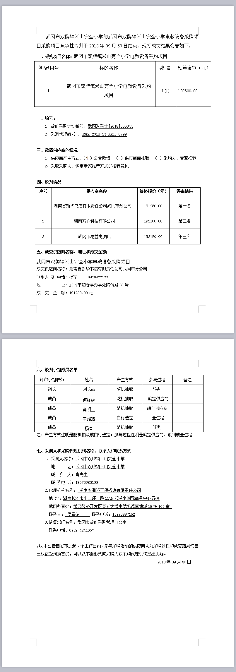 武岡市雙牌鎮(zhèn)米山完全小學電教設備采購項目競爭性談判成交結(jié)果公告