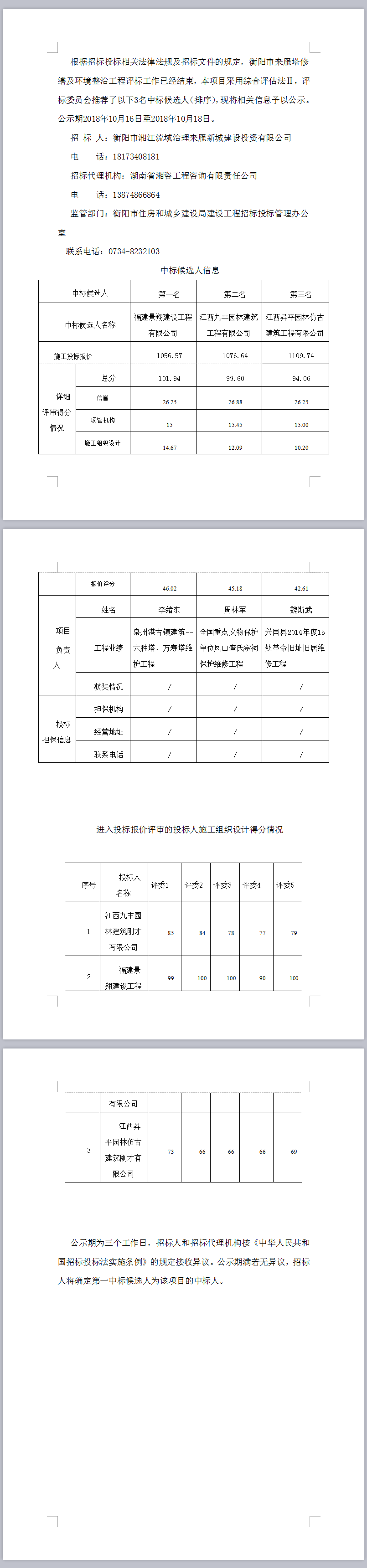 衡陽市來雁塔修繕及環(huán)境整治工程中標候選人公示