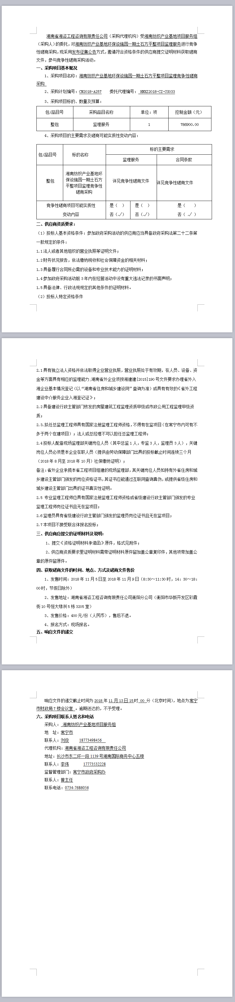 湘南紡織產(chǎn)業(yè)基地環(huán)保設(shè)施園一期土石方平整項(xiàng)目監(jiān)理競爭性磋商采購磋商邀請
