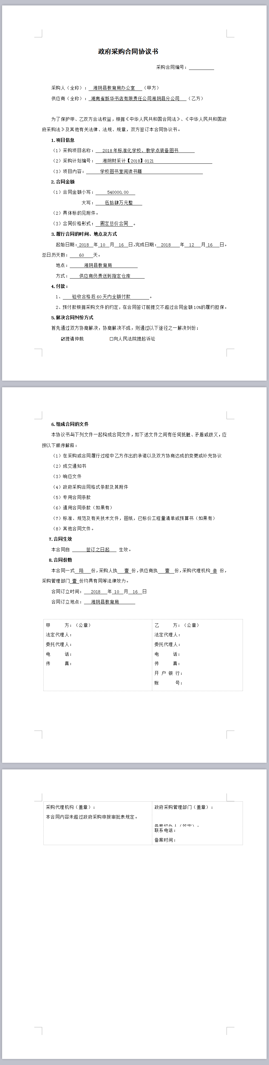 2018年標(biāo)準(zhǔn)化學(xué)校、教學(xué)點(diǎn)裝備圖書政府采購合同協(xié)議書