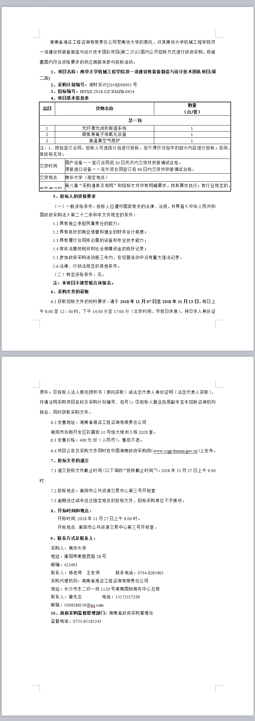 南華大學(xué)機(jī)械工程學(xué)院雙一流建設(shè)核裝備制造與設(shè)計技術(shù)團(tuán)隊(duì)項(xiàng)目(第二次)  招標(biāo)公告