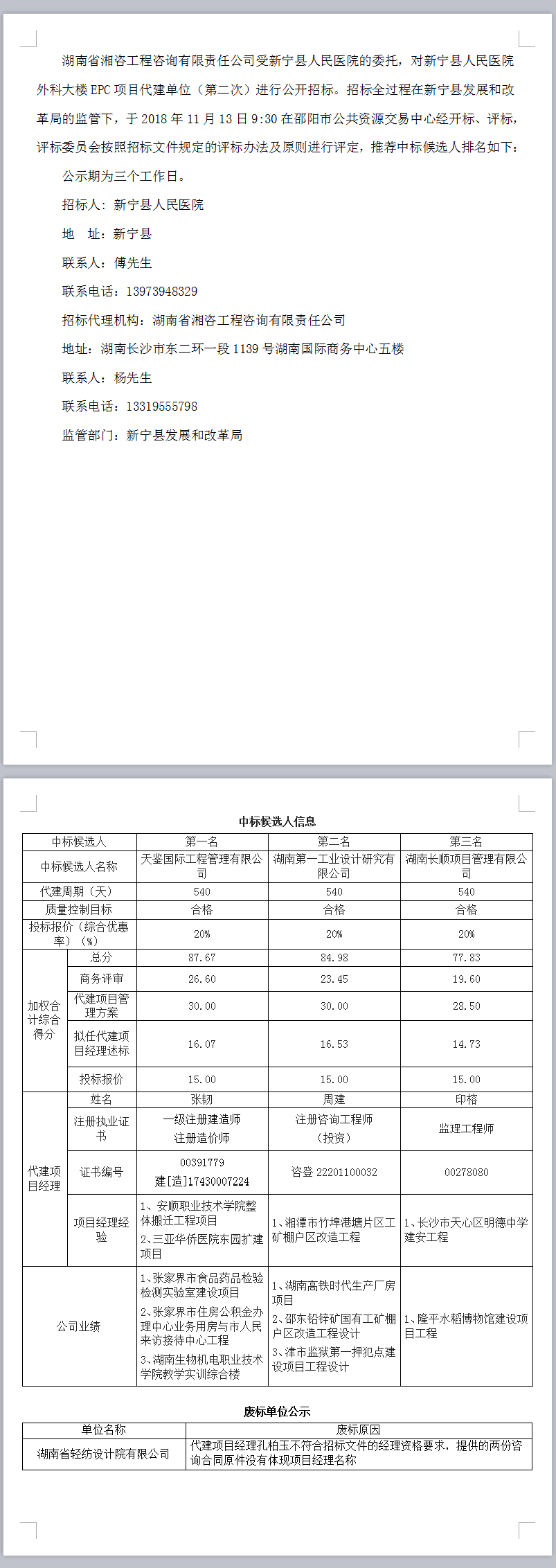 新寧縣人民醫(yī)院外科大樓EPC項目代建單位(第二次) 招標投標信息公示表