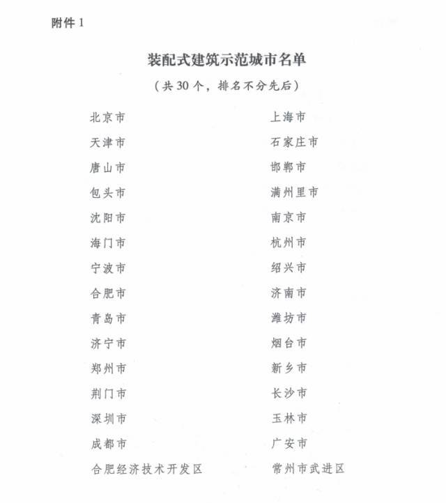 附件:1.裝配式建筑示范城市名單