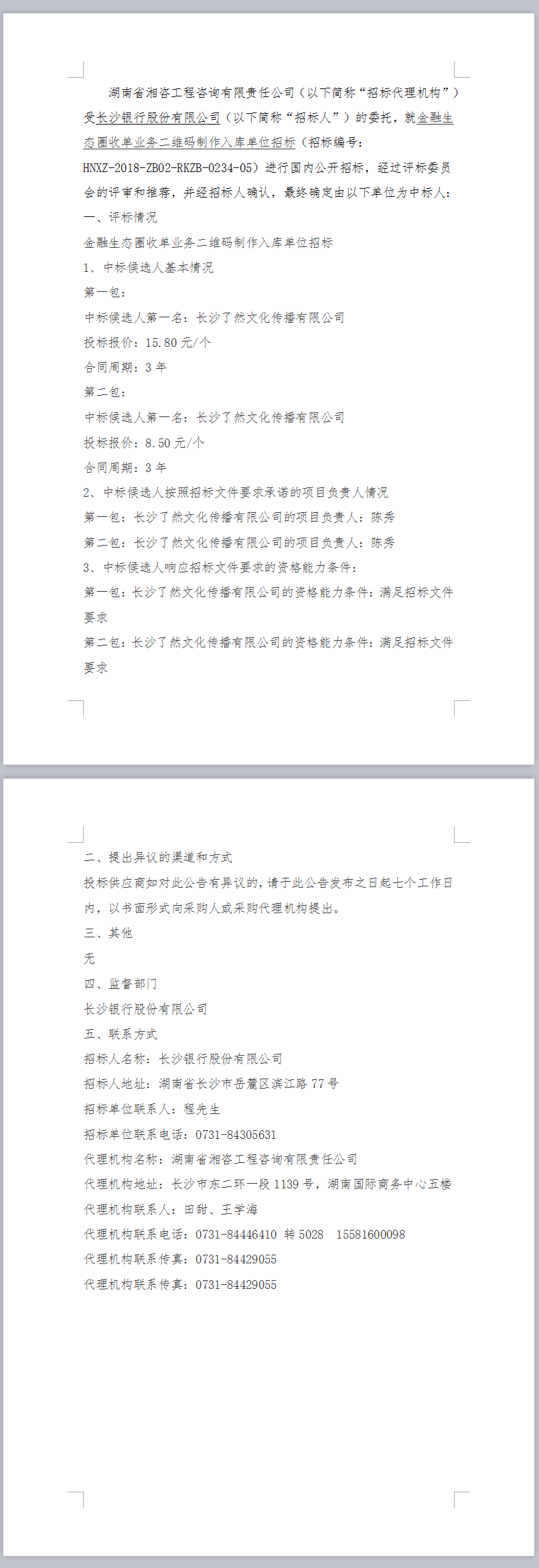 金融生態(tài)圈收單業(yè)務(wù)二維碼制作入庫單位招標(biāo)中標(biāo)結(jié)果公告