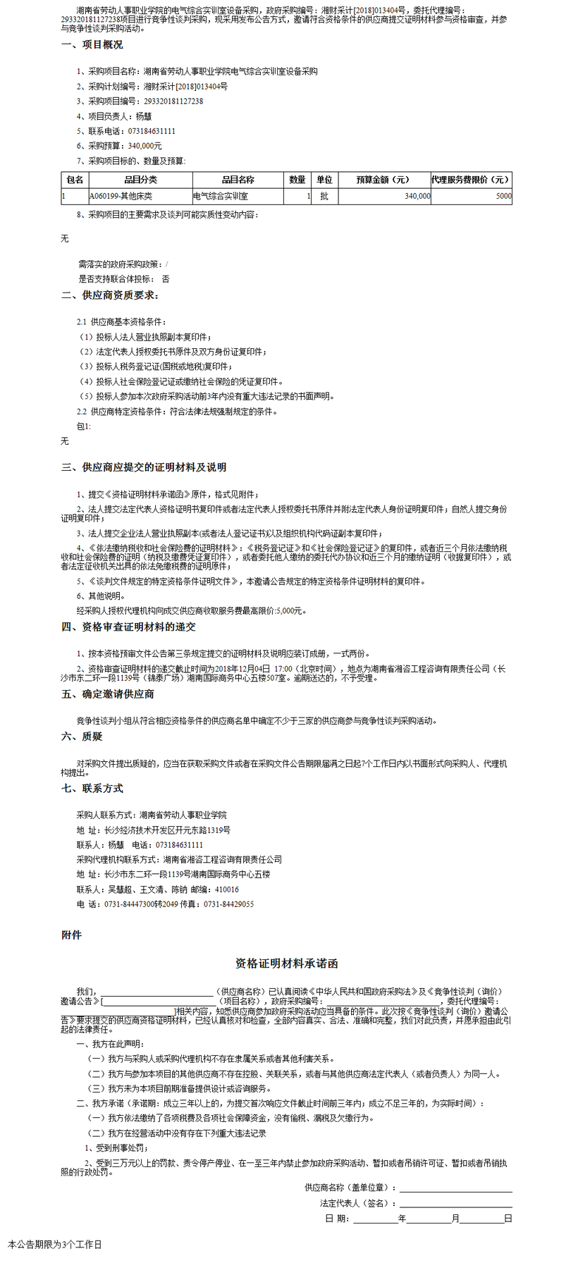 湖南省勞動人事職業(yè)學(xué)院電氣綜合實訓(xùn)室設(shè)備采購項目競爭性談判邀請公告