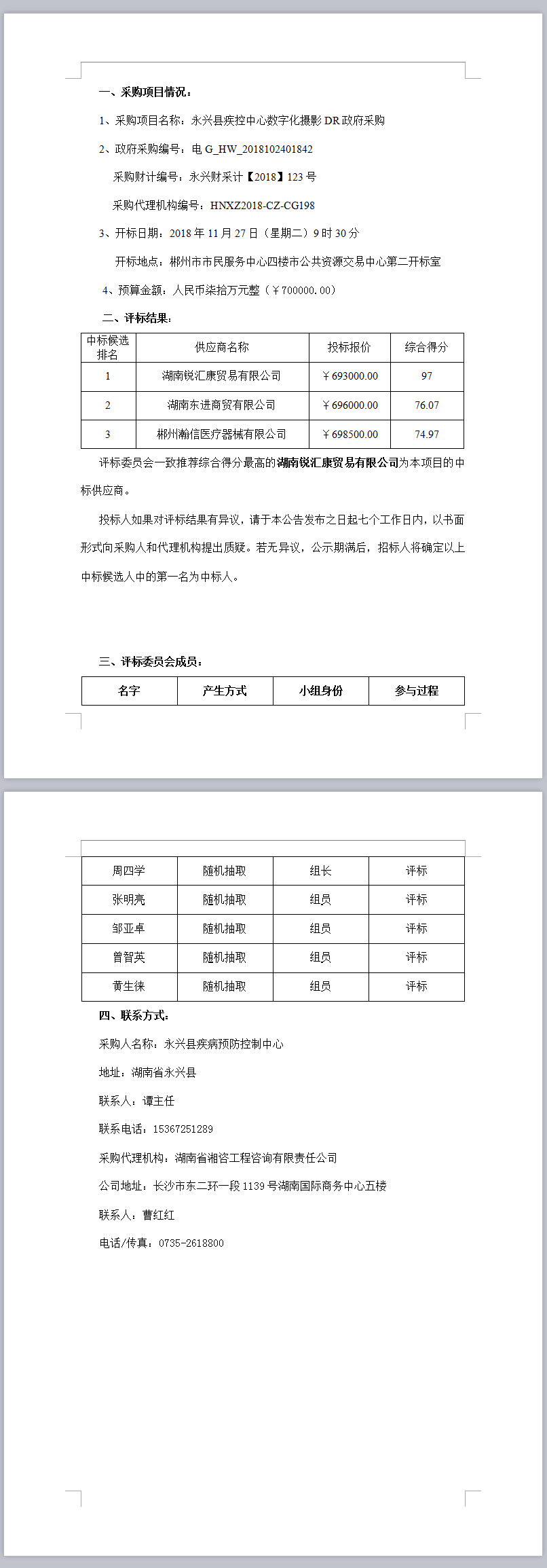 永興縣疾控中心數(shù)字化攝影DR政府采購(gòu) 中標(biāo)結(jié)果公示