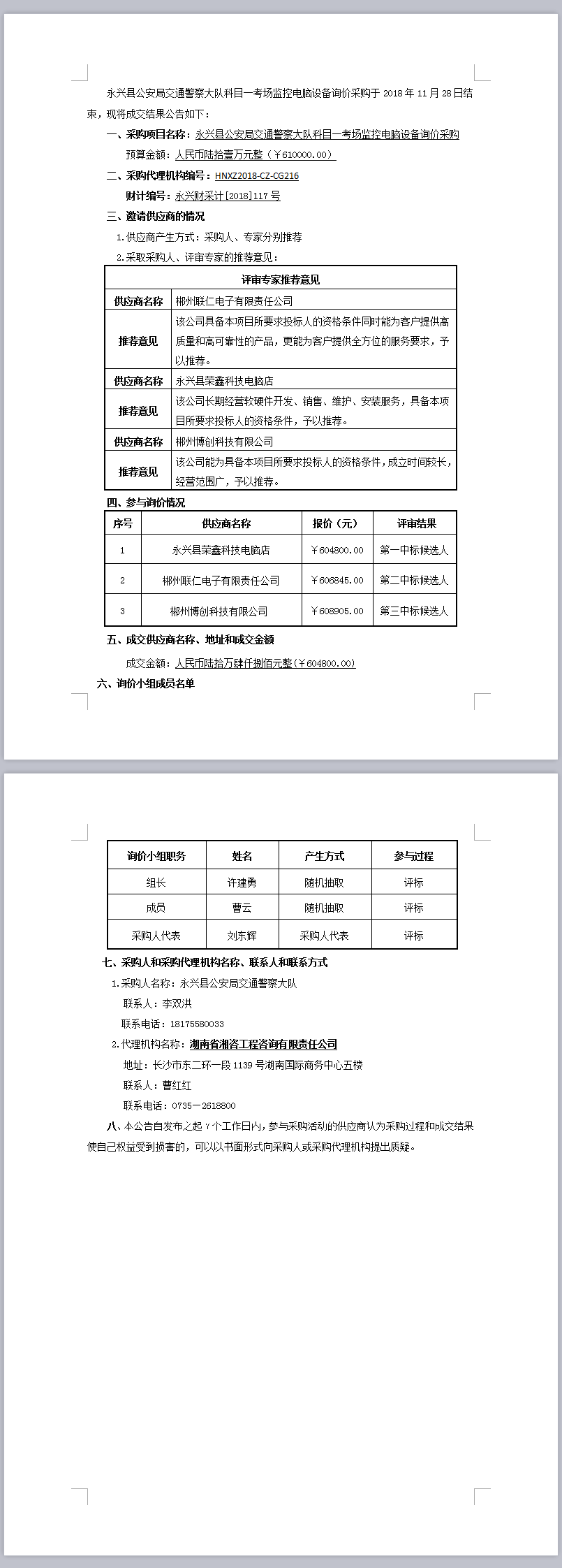 永興縣公安局交通警察大隊(duì)科目一考場(chǎng)監(jiān)控電腦設(shè)備詢價(jià)采購(gòu)成交結(jié)果公告