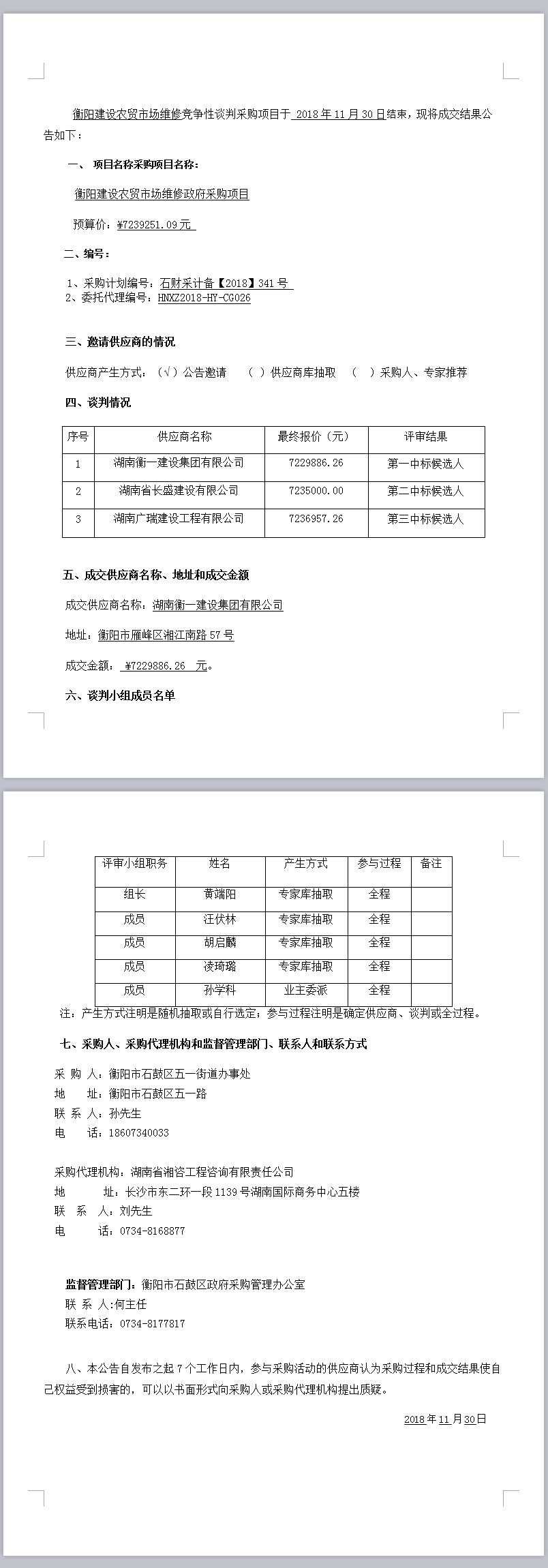 衡陽建設(shè)農(nóng)貿(mào)市場維修政府采購項(xiàng)目競爭性談判成交結(jié)果公告