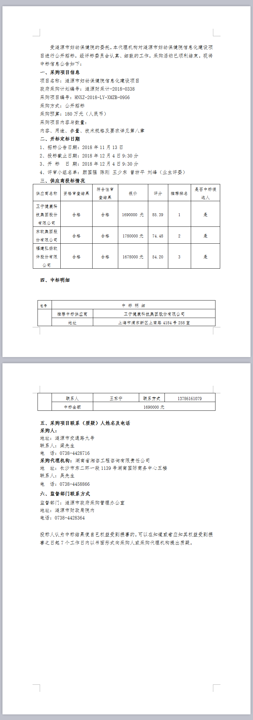 漣源市婦幼保健院信息化建設(shè)項(xiàng)目中標(biāo)結(jié)果公告