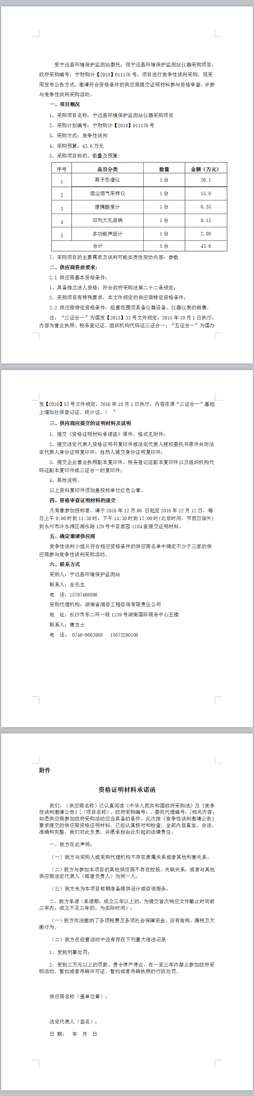 寧遠(yuǎn)縣環(huán)境保護(hù)監(jiān)測(cè)站儀器采購(gòu)項(xiàng)目競(jìng)爭(zhēng)性談判公告