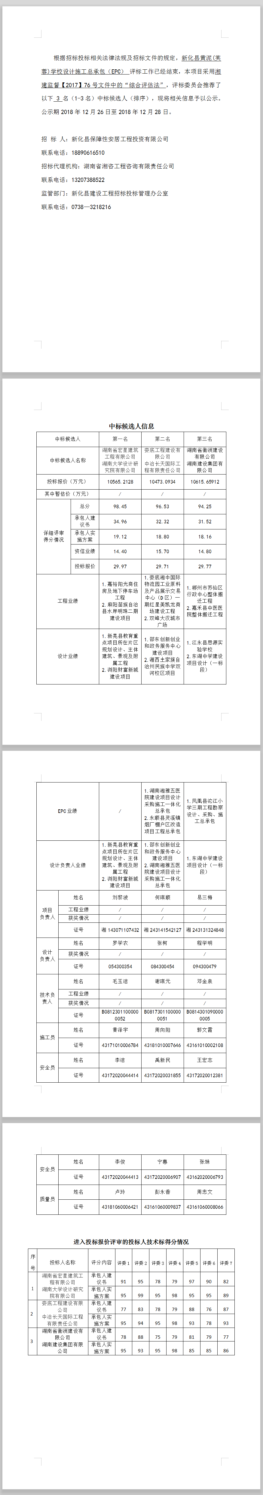 新化縣黃泥(芙蓉)學(xué)校設(shè)計施工總承包(EPC)中標候選人公示更正公告