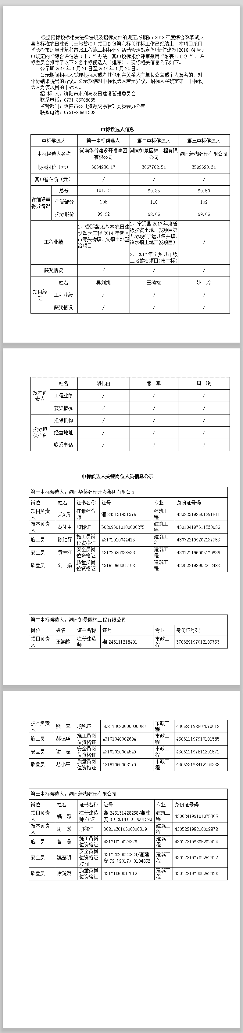 瀏陽市2018年度綜合改革試點縣高標準農田建設(土地整治)項目D包第六標段 中標候選人公示
