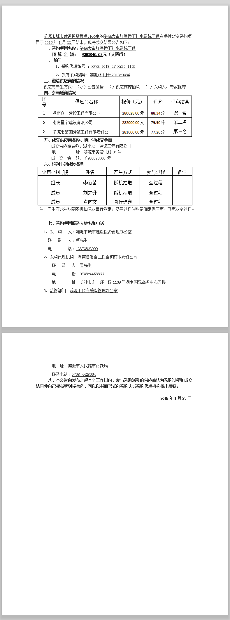 婁底大道紅星橋下排水系統(tǒng)工程 競爭性磋商成交結(jié)果公告