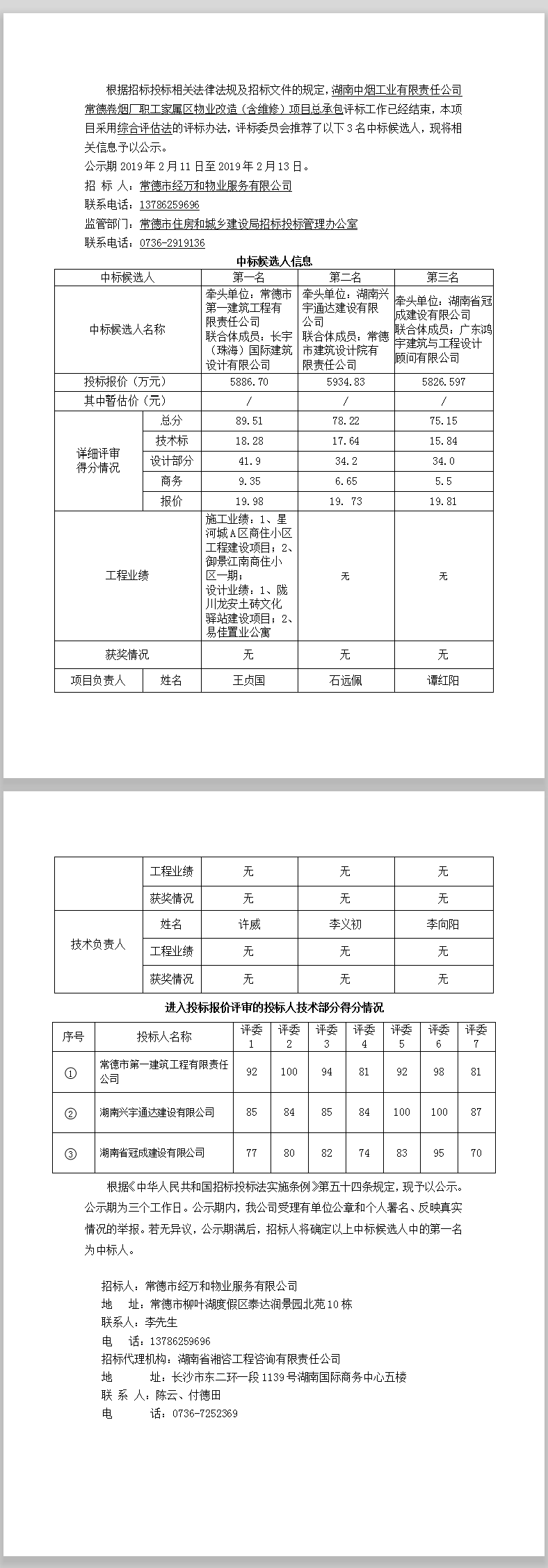 湖南中煙工業(yè)有限責(zé)任公司常德卷煙廠職工家屬區(qū)物業(yè)改造(含維修)項(xiàng)目總承包中標(biāo)候選人公示