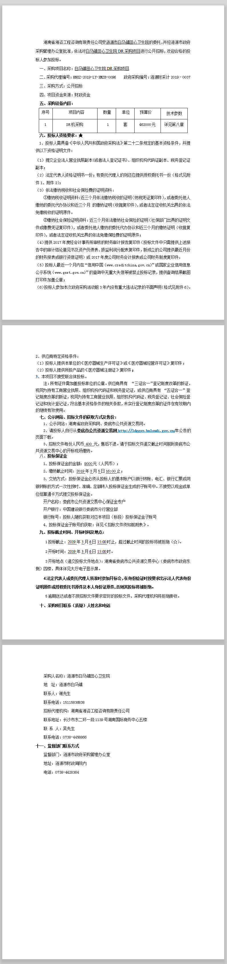 白馬鎮(zhèn)田心衛(wèi)生院DR采購項目招標公告