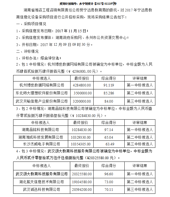 2017年寧遠(yuǎn)縣教育信息化設(shè)備采購項(xiàng)目中標(biāo)公告