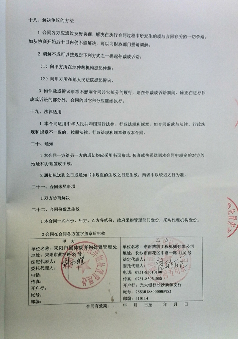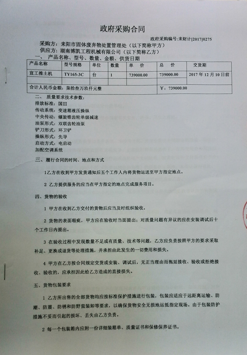 耒陽(yáng)市固體廢棄物處置管理處推土機(jī)(環(huán)衛(wèi)型)合同公示