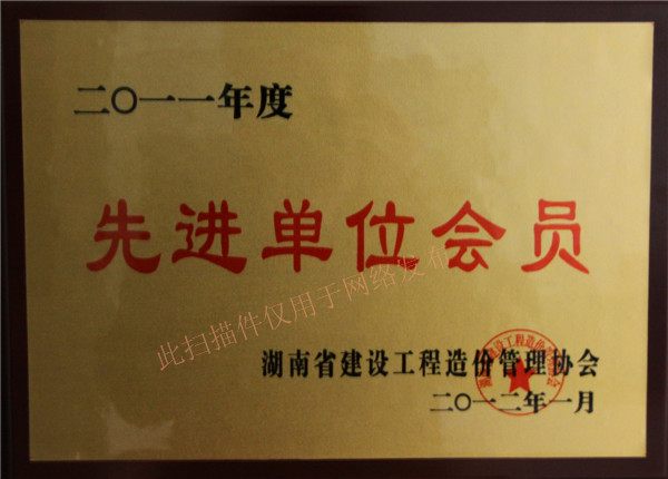 熱烈慶祝我司榮獲湖南省造價工程管理協(xié)會2011年度先進單位會員