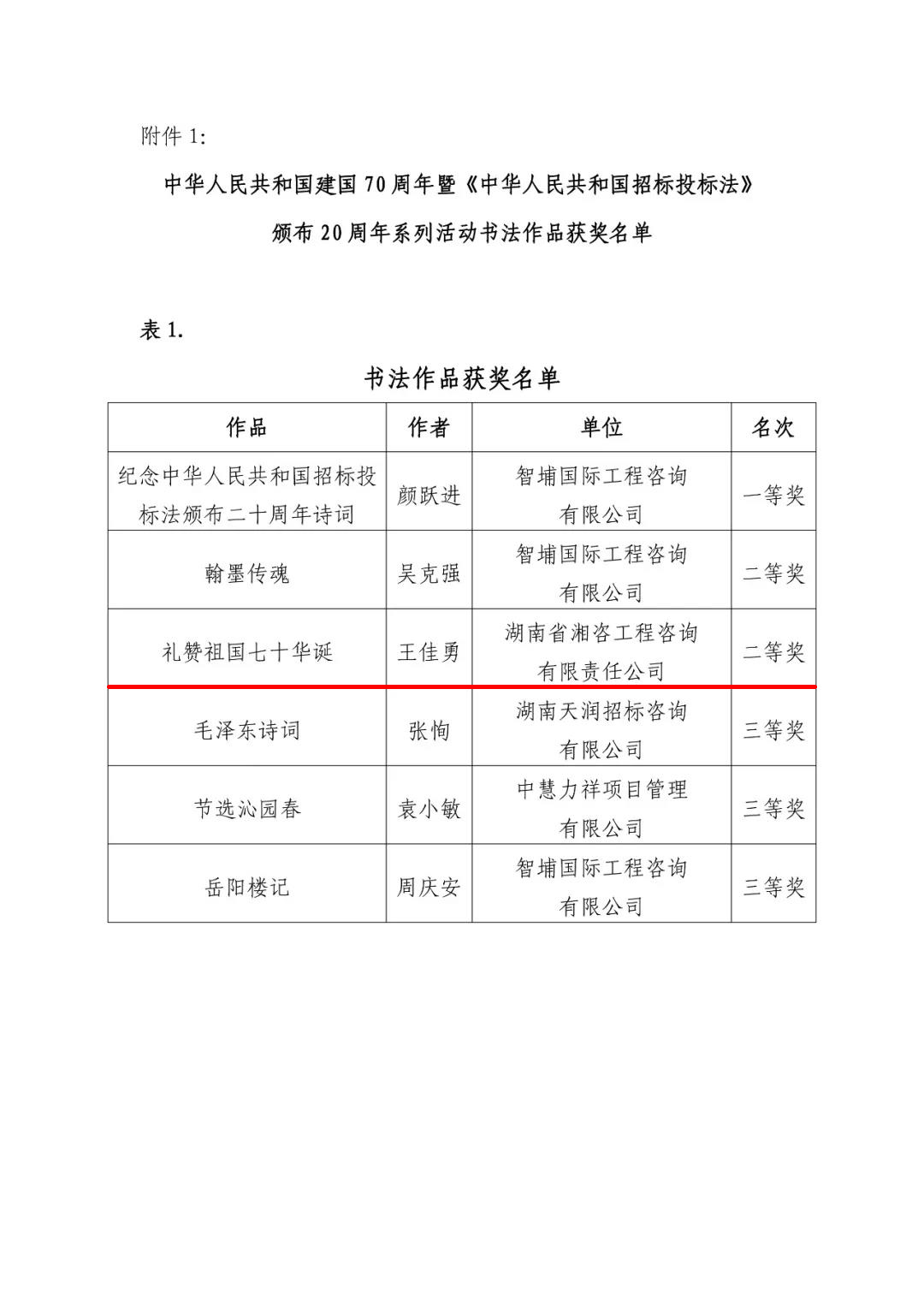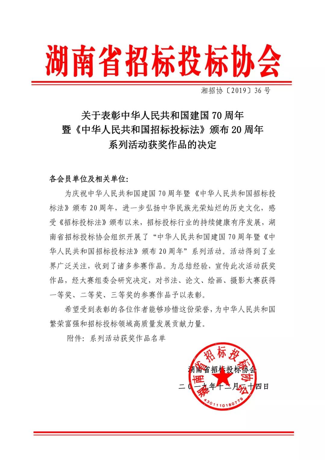【喜訊】熱烈祝賀我司王佳勇榮獲湖南省招標(biāo)投標(biāo)協(xié)會書法大賽二等獎