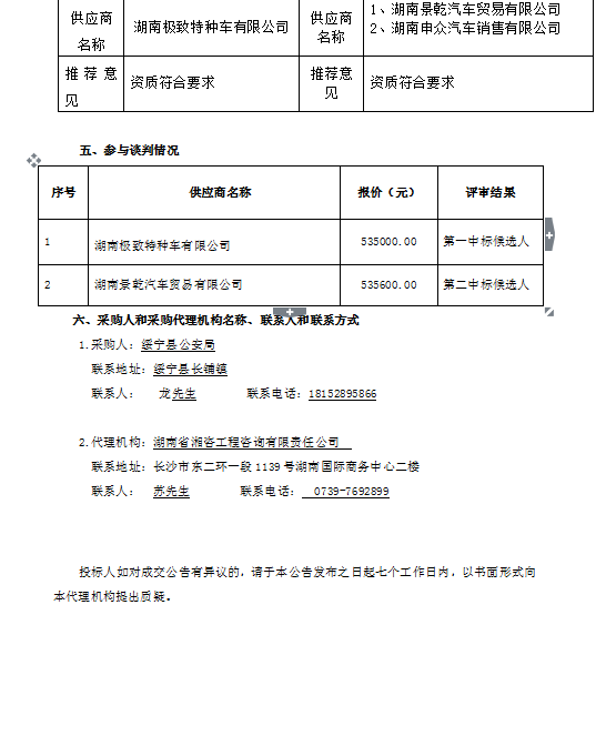 綏寧縣公安局運(yùn)兵車、囚車采購成交公告