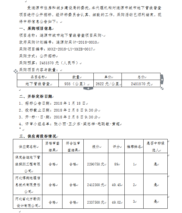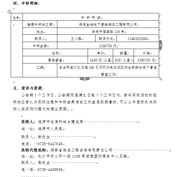 漣源市城市地下管線普查項(xiàng)目采購中標(biāo)結(jié)果公告