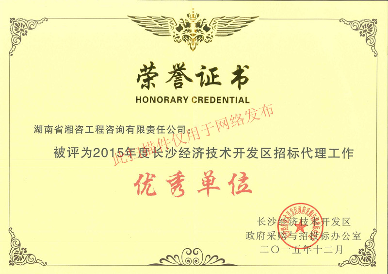 【喜訊】熱烈慶祝我司榮獲2015年度長沙市經(jīng)濟技術(shù)開發(fā)區(qū)招標(biāo)代理工作優(yōu)秀單位