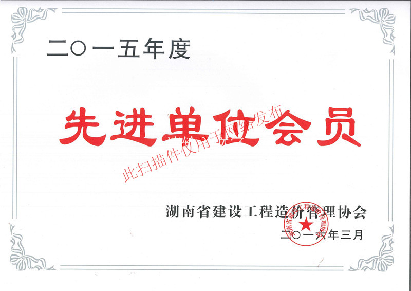 【喜訊】熱烈慶祝我司榮獲湖南省建設工程造價管理協(xié)會頒發(fā)的2015年度先進單位會員