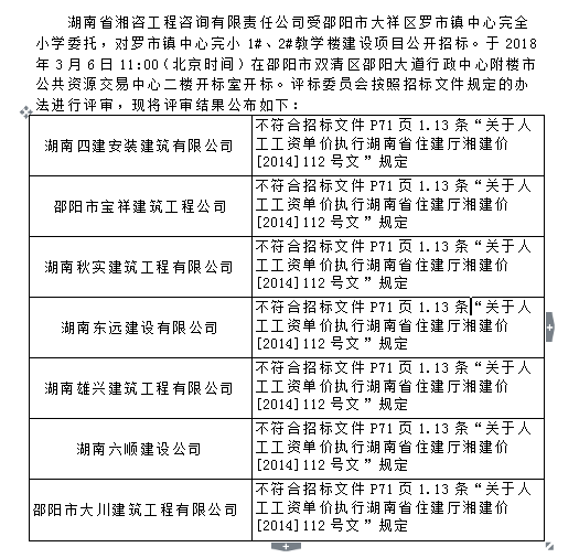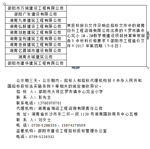 羅市鎮(zhèn)中心完小1#、2#教學(xué)樓建設(shè)項(xiàng)目 評(píng)審結(jié)論公示