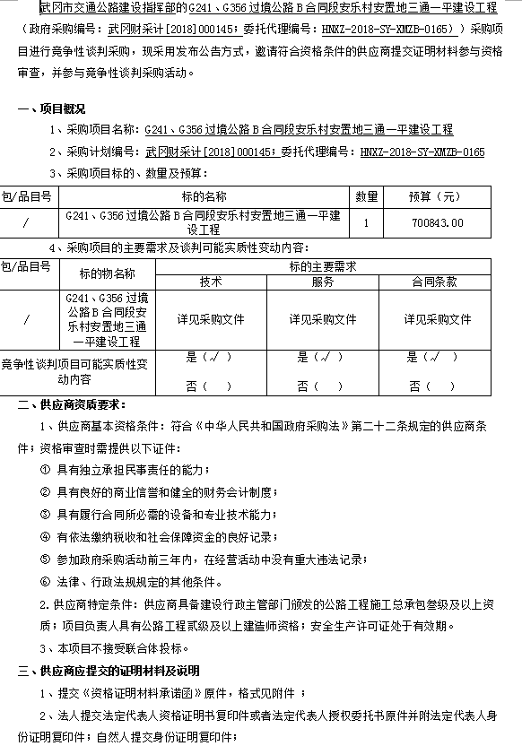 G241、G356過境公路B合同段安樂村安置地三通一平建設(shè)工程 競爭性談判邀請公告