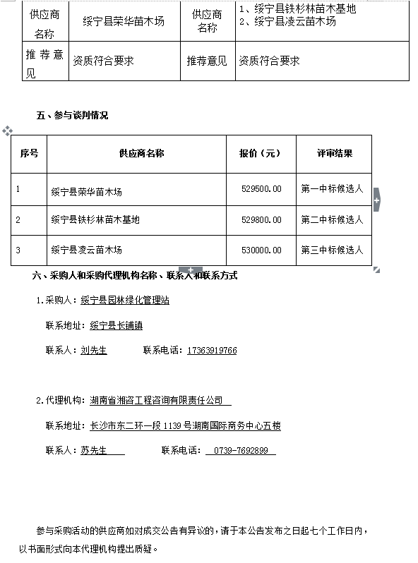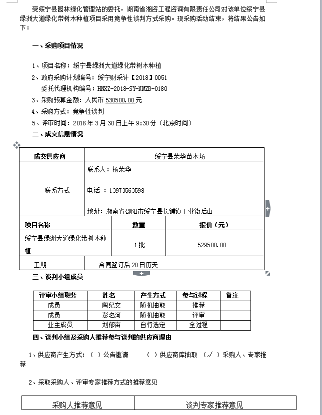 綏寧縣綠洲大道綠化帶樹木種植項(xiàng)目談判成交公告