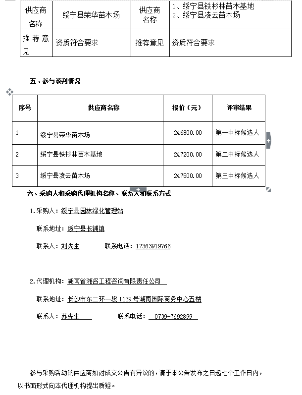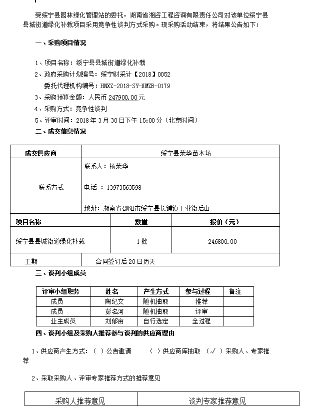 綏寧縣縣城街道綠化補(bǔ)栽項(xiàng)目談判成交公告