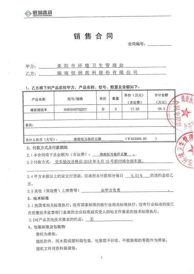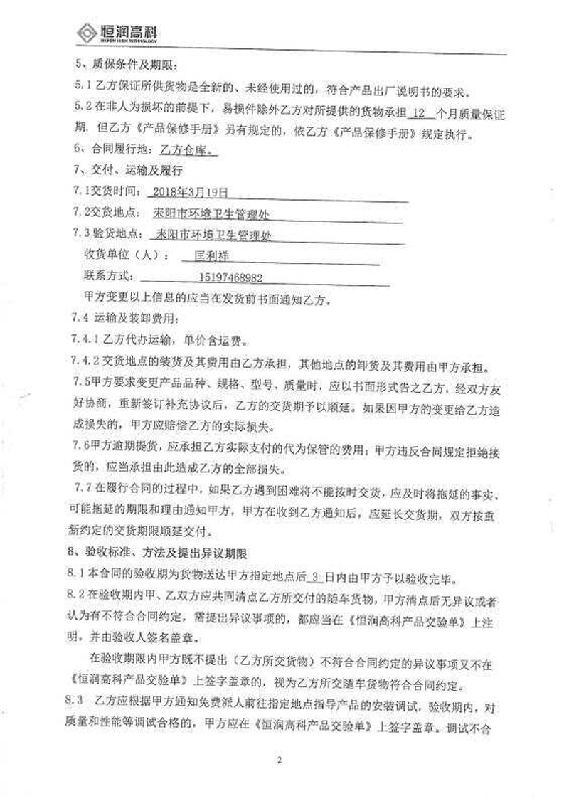 耒陽市環(huán)境衛(wèi)生管理處人行道清洗車競爭性談判合同公示