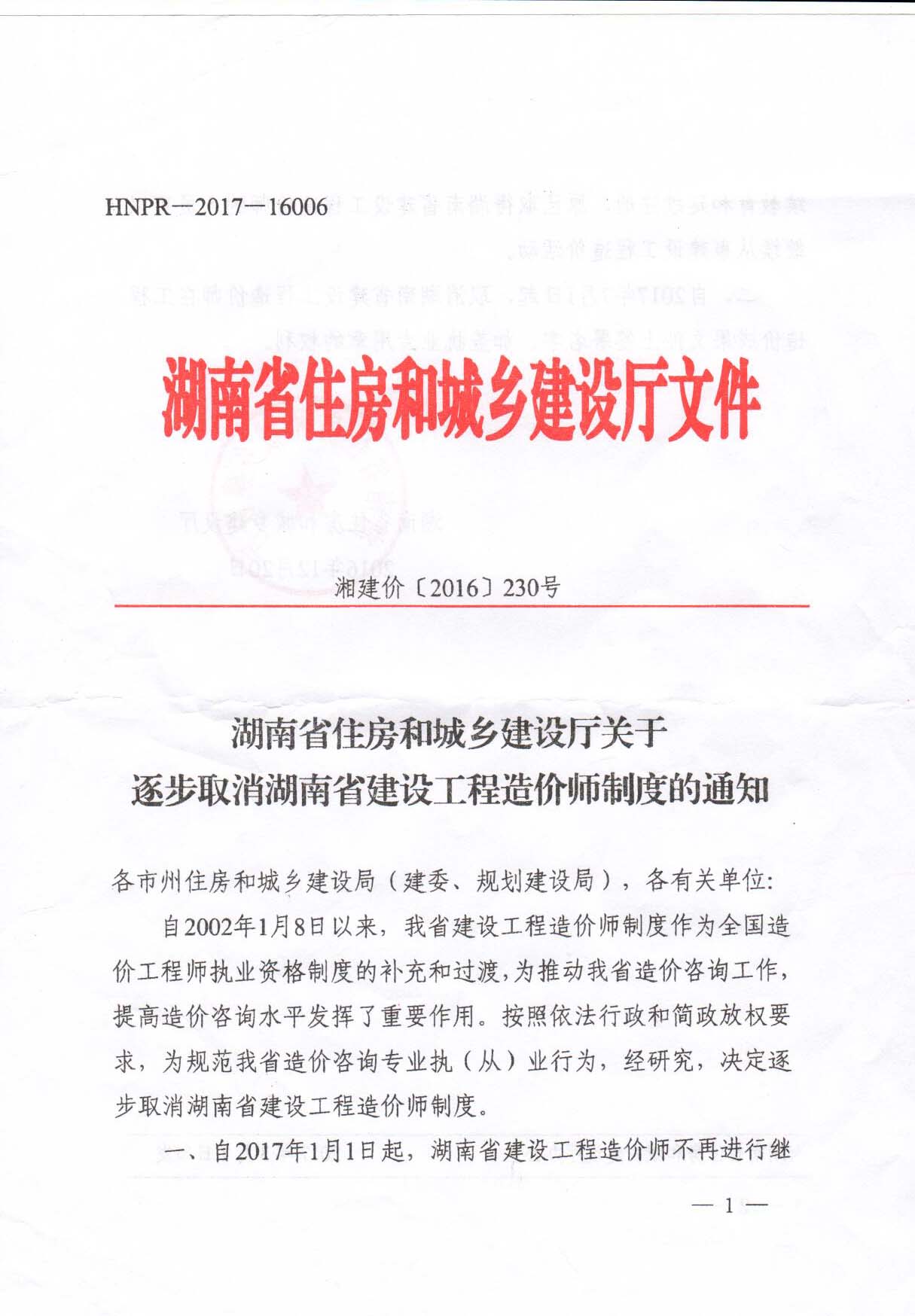 湖南省住建廳關(guān)于逐步取消湖南省建設(shè)工程造價(jià)師制度的通知