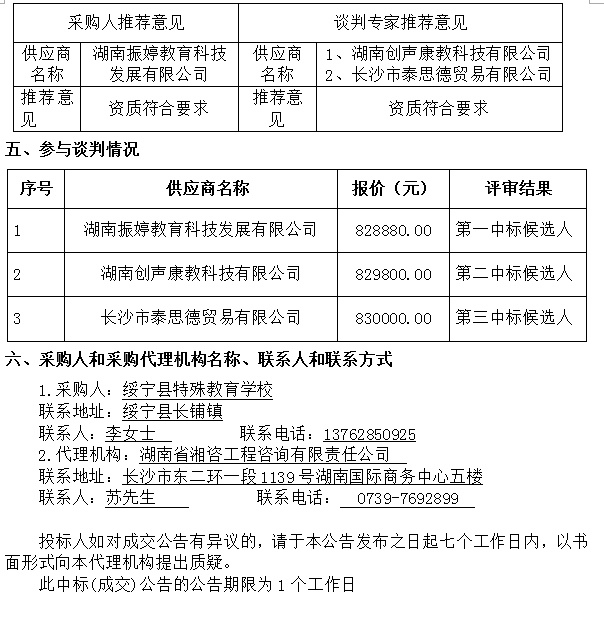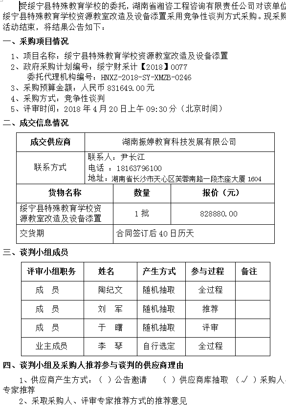綏寧縣特殊教育學(xué)校資源教室改造及設(shè)備添置談判成交公告