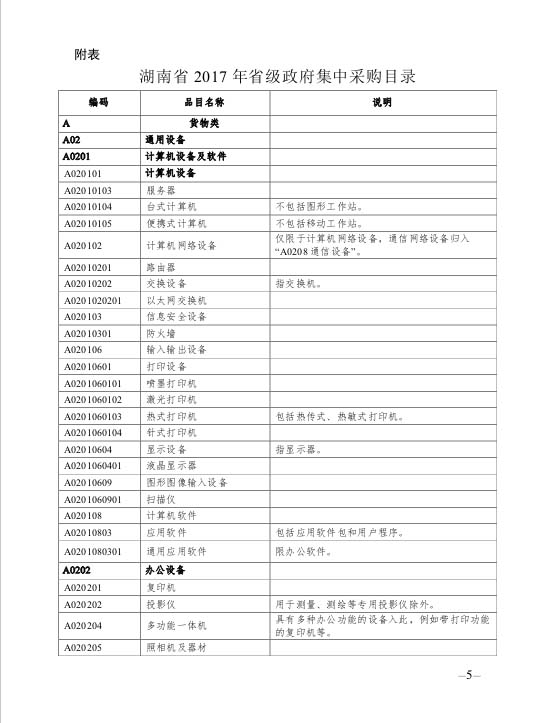 湖南省財(cái)政廳關(guān)于印發(fā)《湖南省2017年省級(jí)政府集中采購(gòu)目錄以及政府采購(gòu)限額標(biāo)準(zhǔn)》的通知