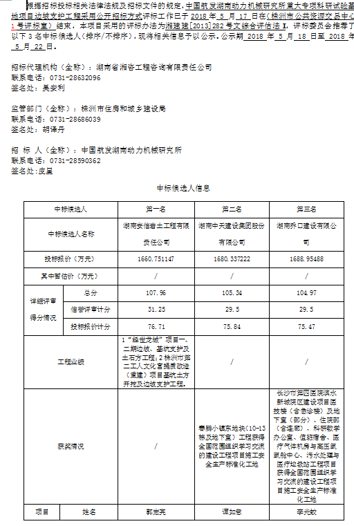 中國航發(fā)湖南動力機(jī)械研究所重大專項科研試驗基地項目邊坡支護(hù)工程招標(biāo)投標(biāo)信息公示表