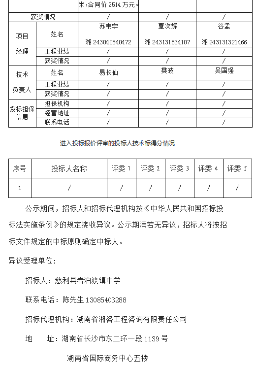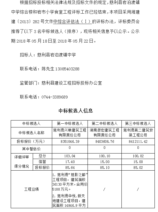 慈利縣巖泊渡鎮(zhèn)中學(xué)綜合樓和巖市小學(xué)食堂工程施工招標(biāo)投標(biāo)信息公示表